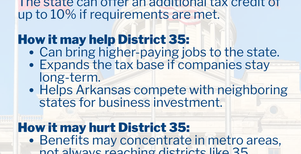 These new laws taking effect in January 2026 reflect choices our state is making and how those choices affect people’s lives. My priority is simple: invest in people, strengthen families, prepare our workforce, and build opportunity that lasts. That’s how we move District 35 and Arkansas forward together.